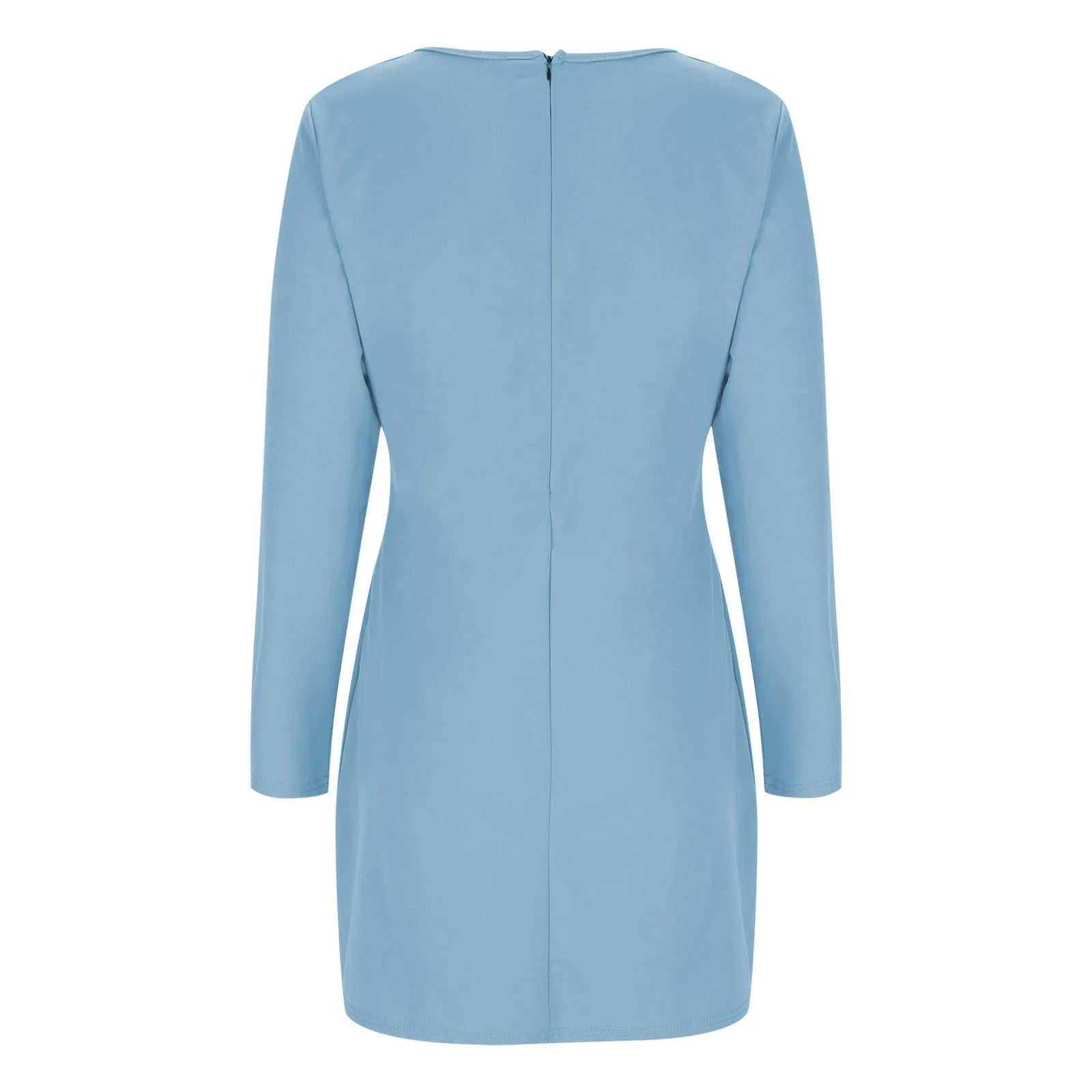 レディース長袖ボートネックミニドレス スリムフィット パーティー クラブ ボディコン 2024年秋ドレス