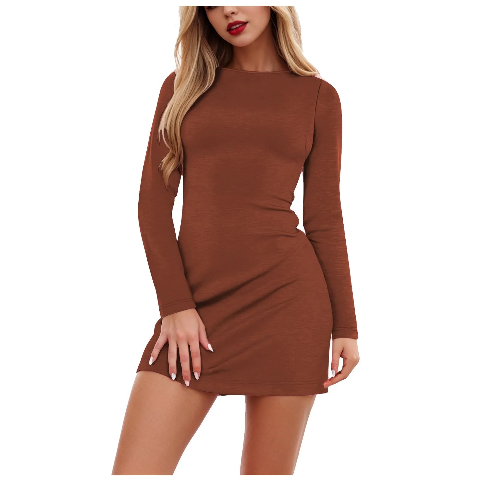2025年春 レディース 長袖 ミニドレス 無地 スリムフィット パーティー クラブ ボディコン 秋用ドレス ベーシック カジュアル Tシャツドレス платье