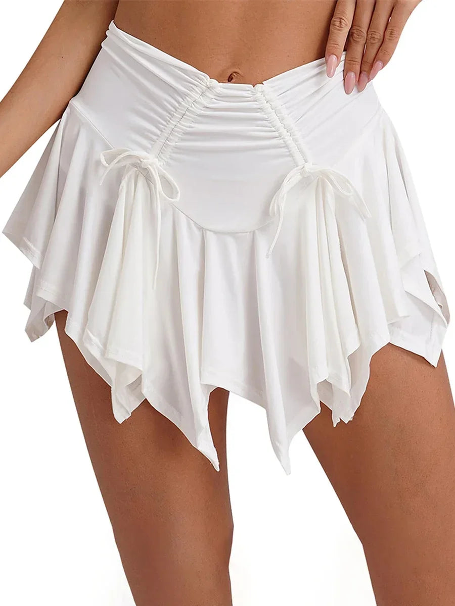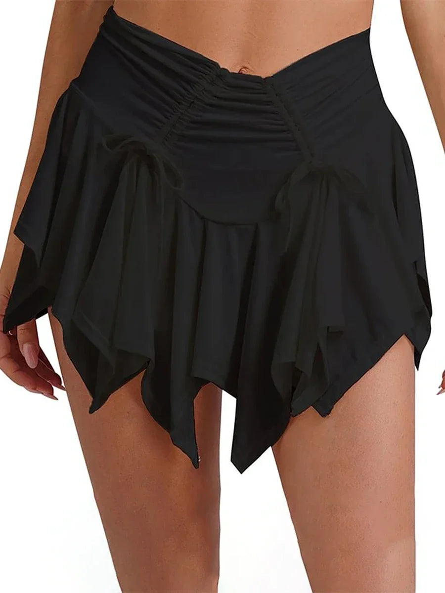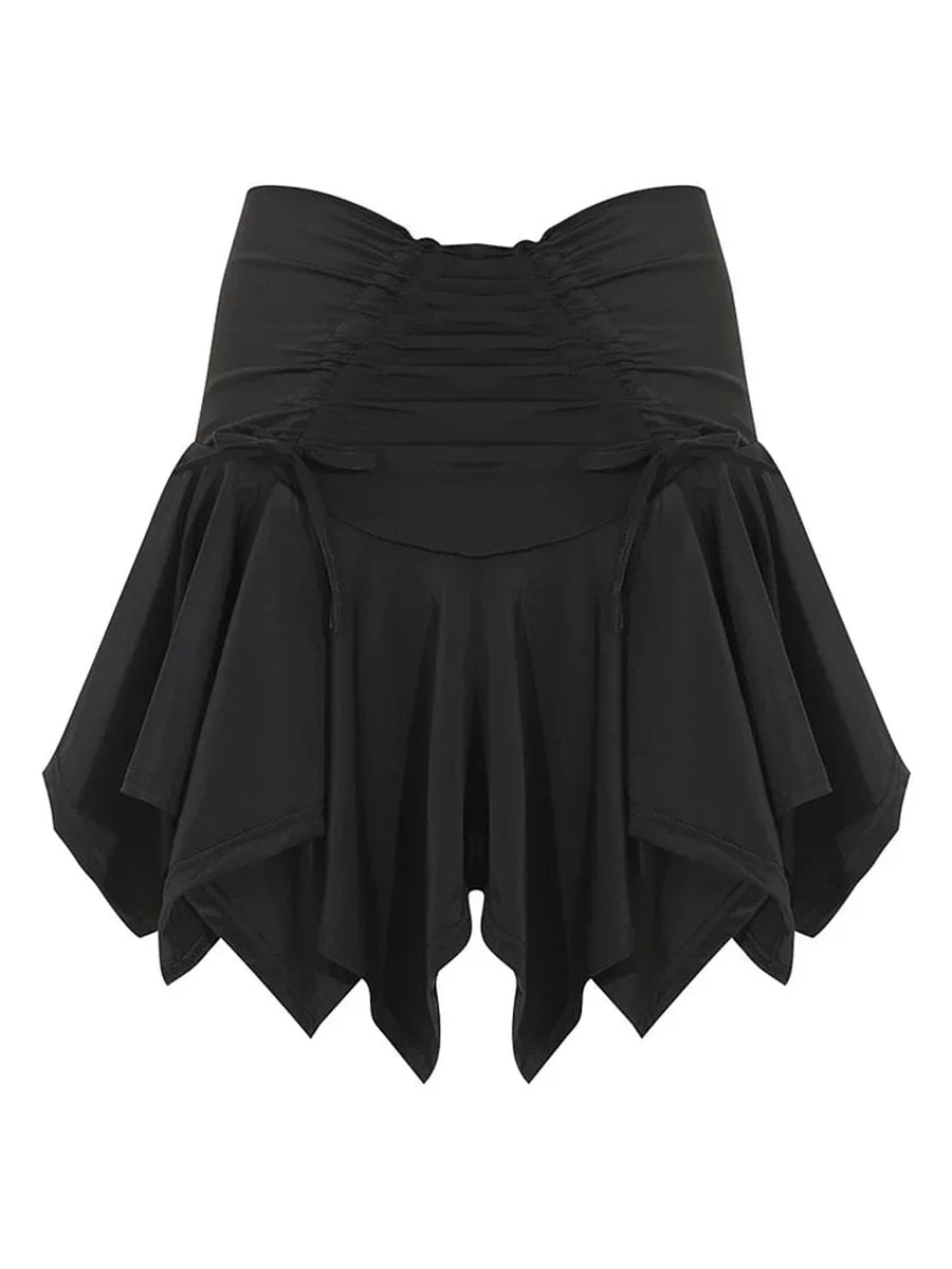 レディースファッション ミニスカート 無地 タイアップ ギャザー入り イレギュラーヘム プリーツスカート ゴシック パンク 夏 カジュアルスカート