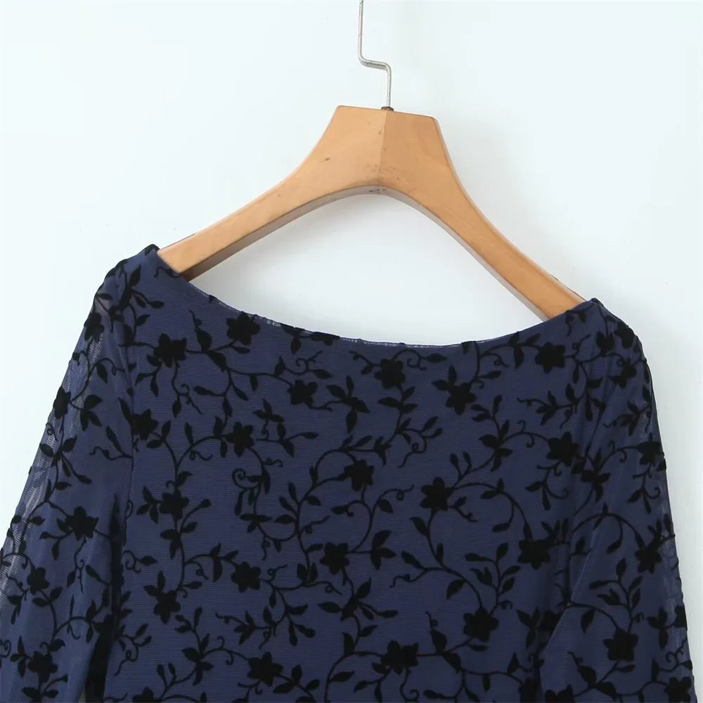 秋新作 レディース フレンチレトロ スパイシーガール プリント入りトランペットスリーブ 長袖 スリムフィット ヒップライン セクシーワンピース