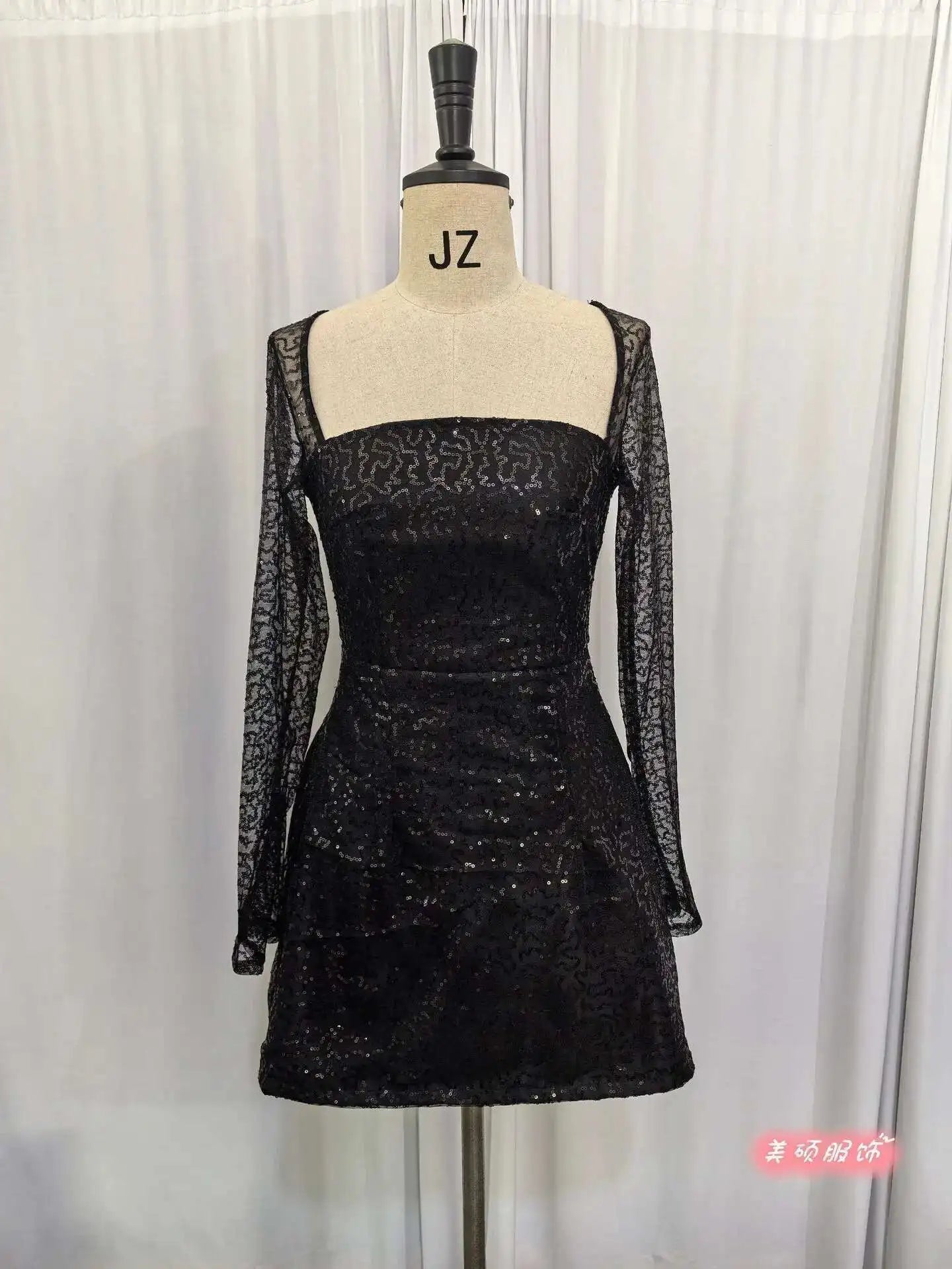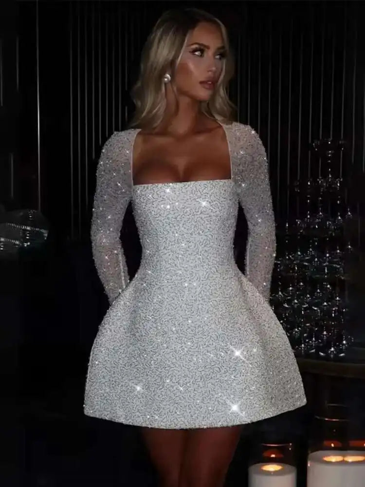 Avrilyaan グリッター バンデージ バックレス セクシー Aライン ドレス レディース エレガント パーティードレス 長袖 ボディコン ミニ 春ワンピース Vestidos