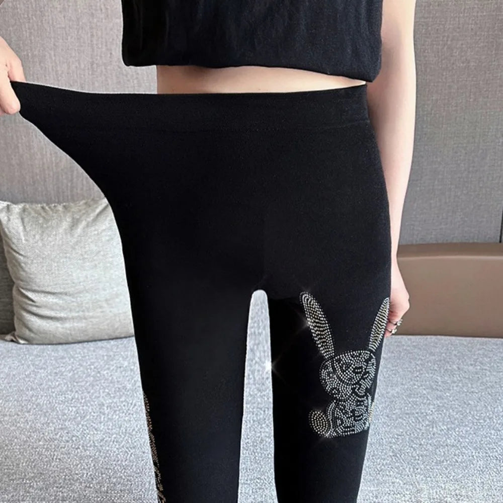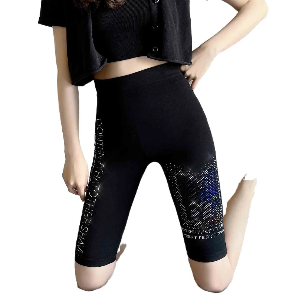 ブラックウィメン ラインストーン レギンス 膝丈 タイツ ハイウエスト ヨガショーツ ストリートウェア パンツ ヒップリフト ショーツ レディース