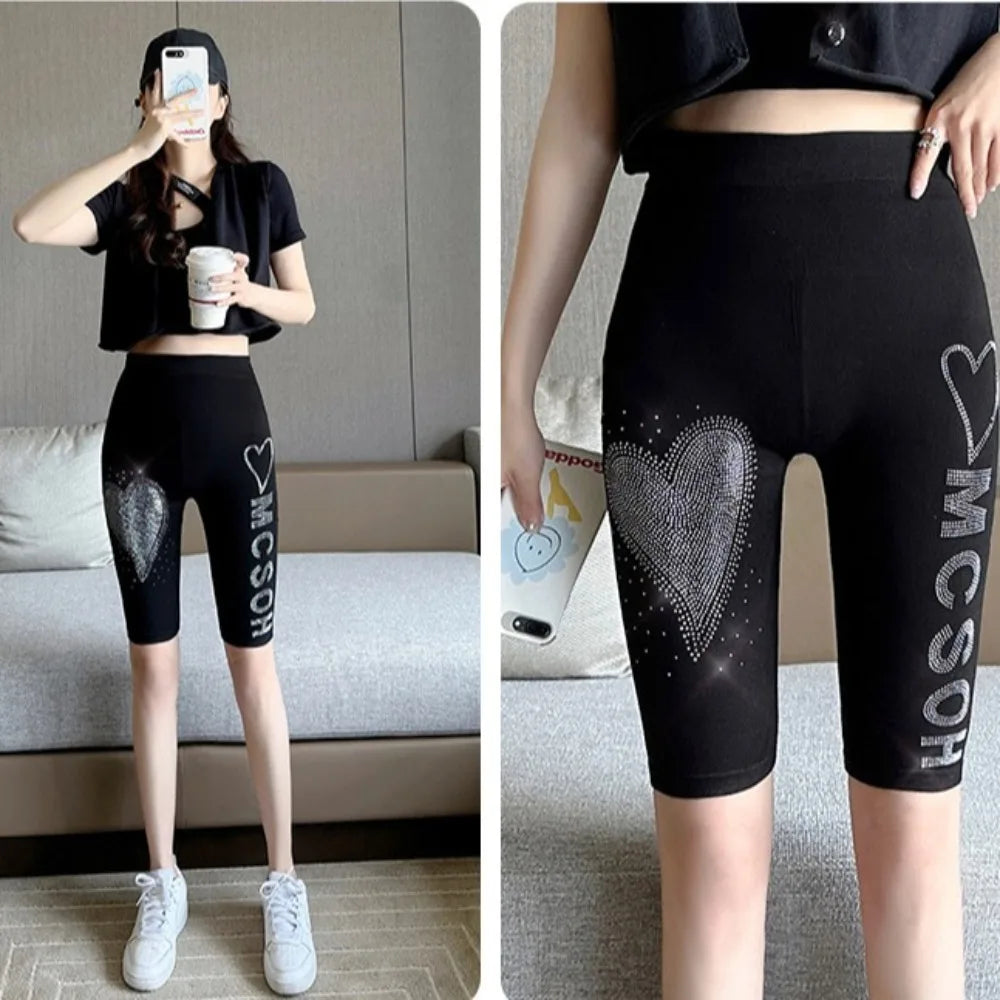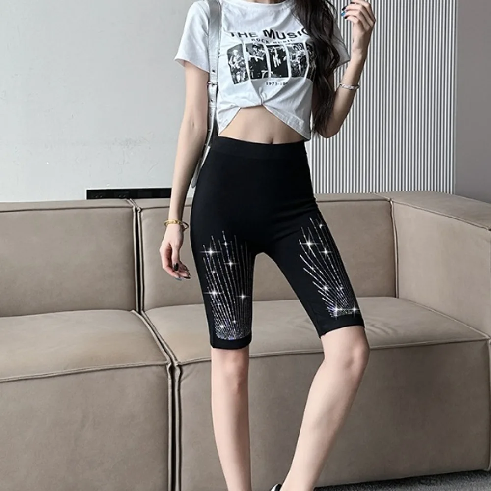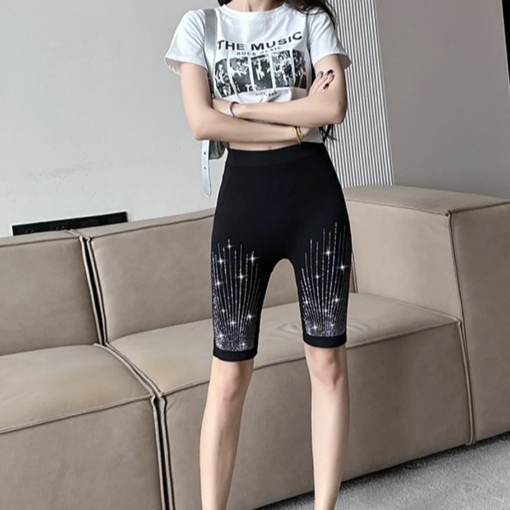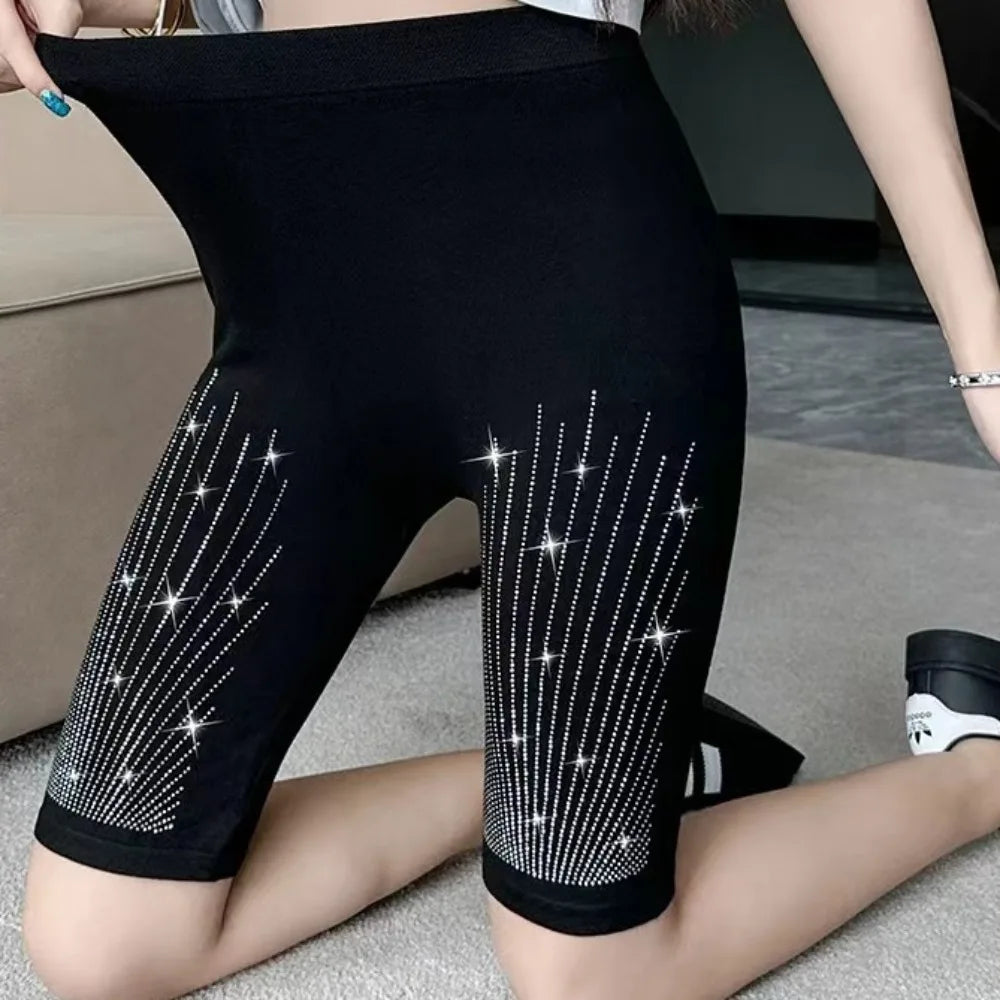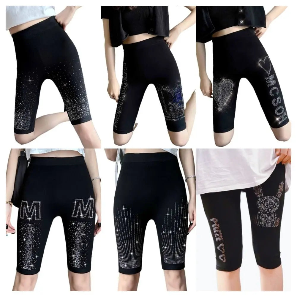 ブラックウーマン ラインストーン レギンス ジルコン レター 膝丈 ハイウエスト ヨガショーツ お腹引き締め ストレッチ