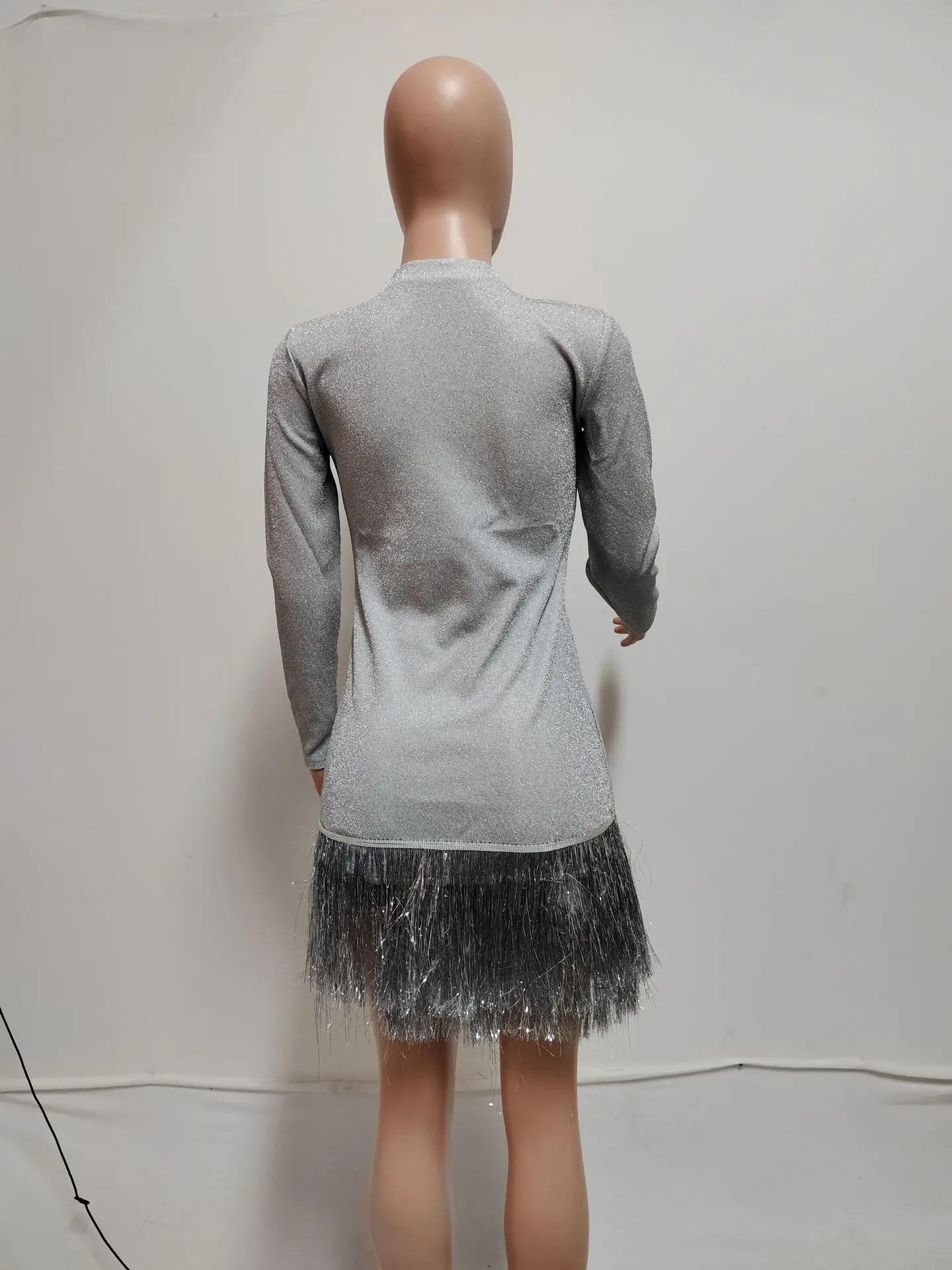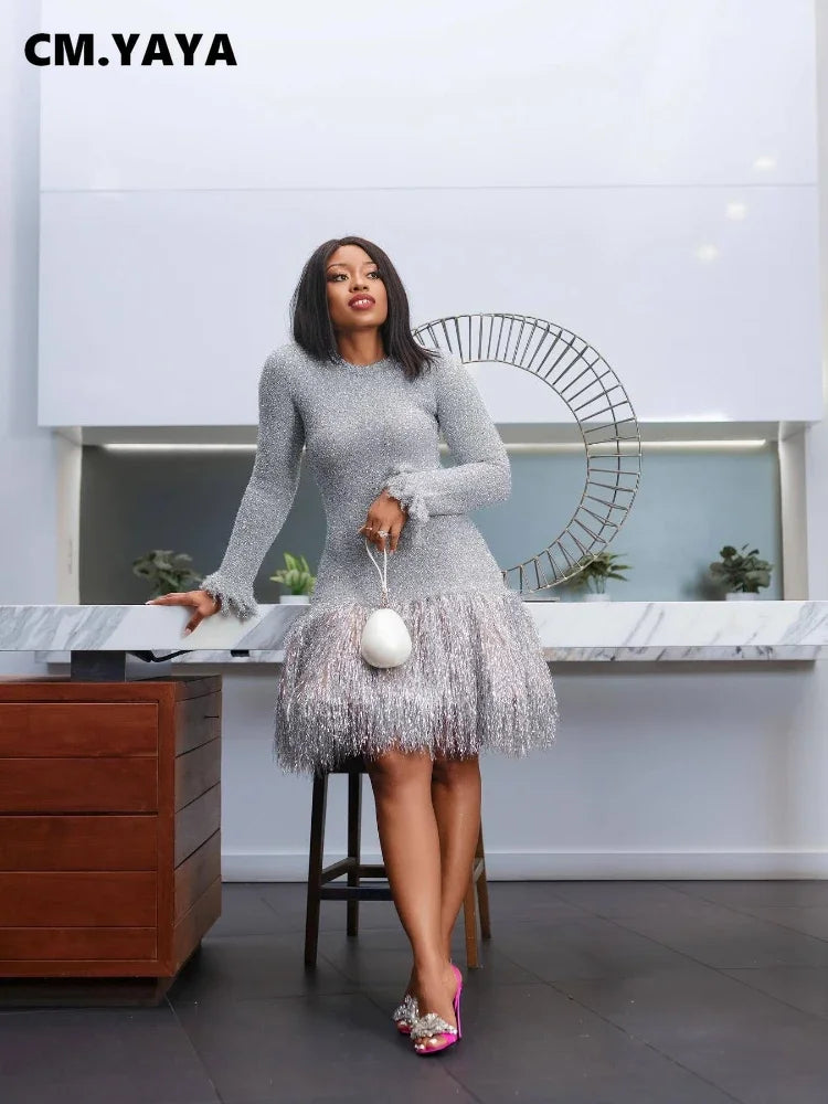 CM.YAYA ファッション レディース シルバー タッセル ボディコン ミニ ミディ ドレス 2024年 秋冬 長袖 パーティー クラブ イブニングドレス ベスティドス