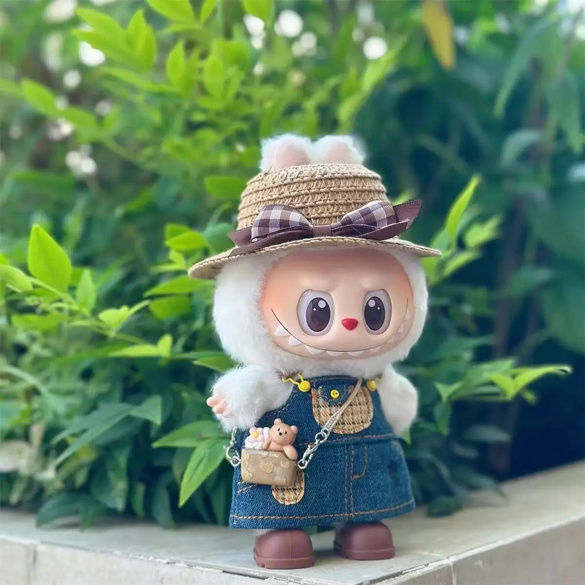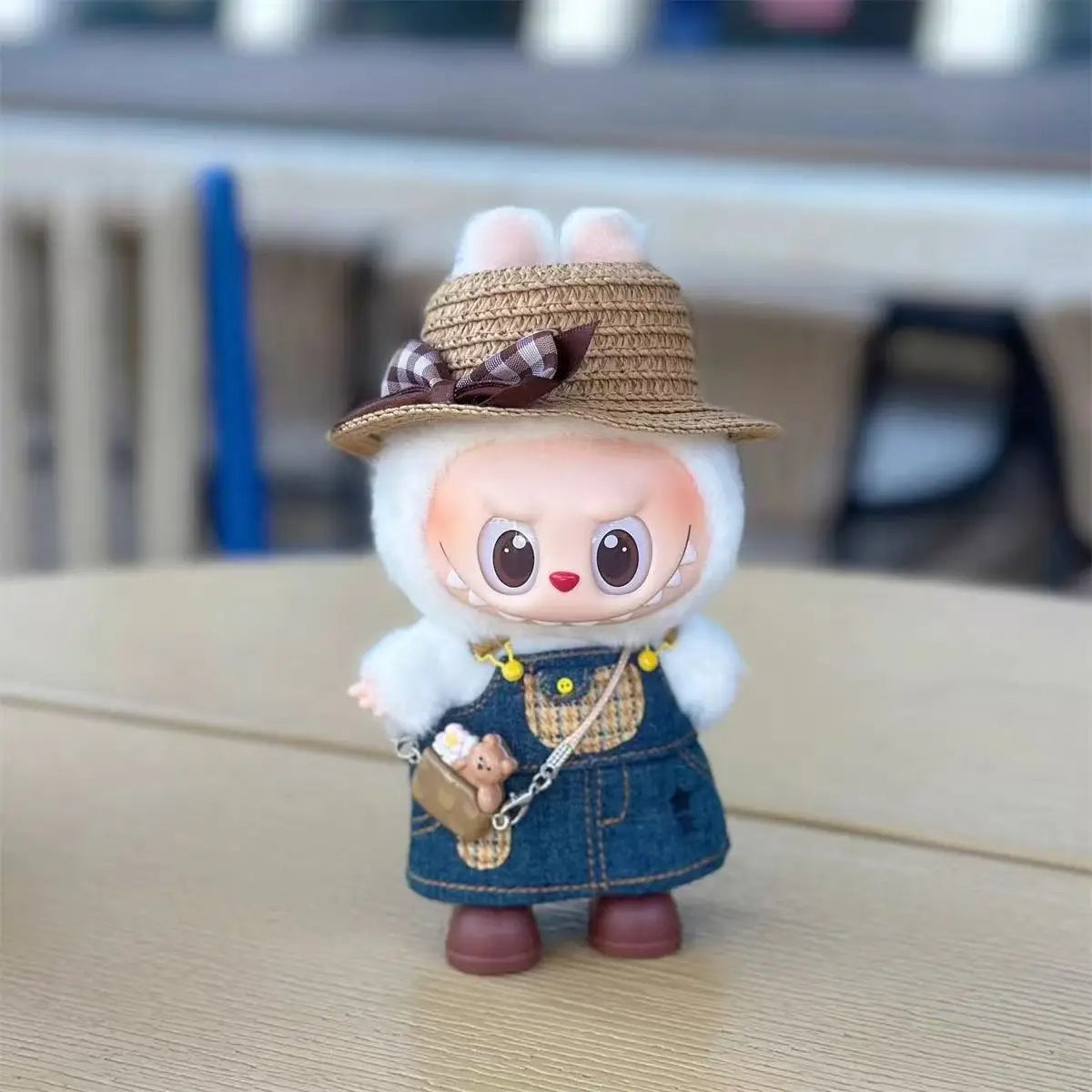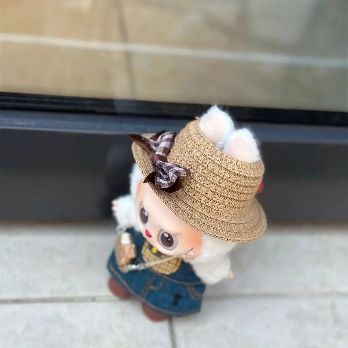 デニムストラップスカート&ストローハットスカート 3.0 labubu V1 V2 V3 ドール用衣装 Ropa labubu ドールアクセサリー