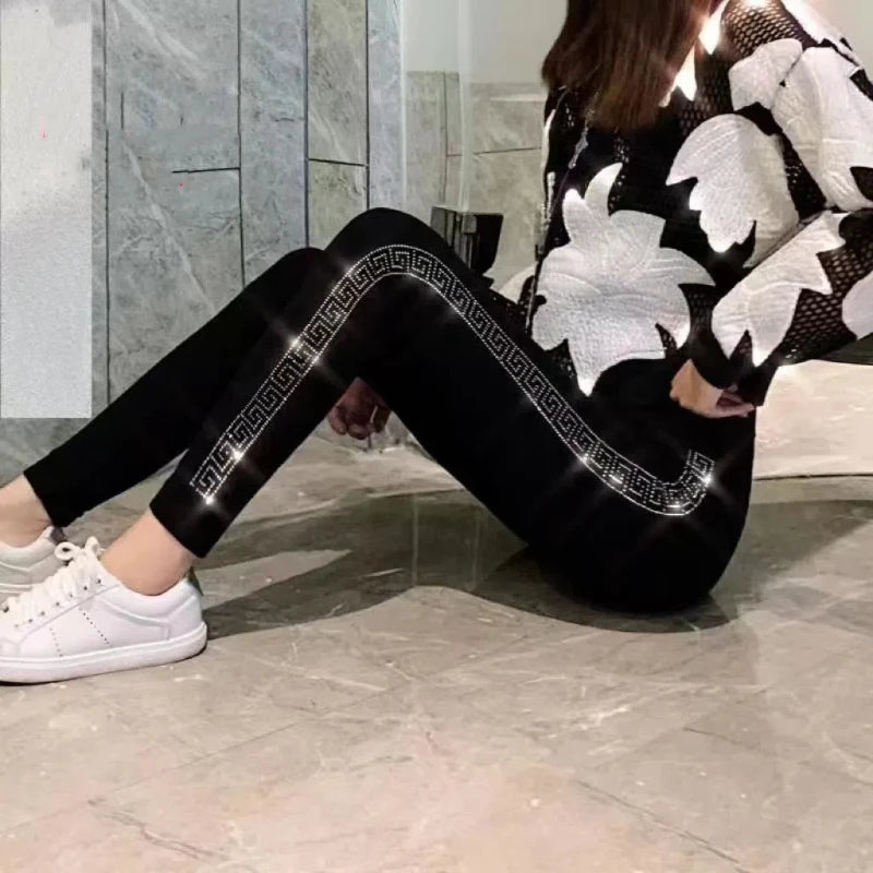 ファッショニック 秋の勝者 新作レギンス レディース ダイヤモンド柄 伸縮性あり ハイウエスト ヒップアップ 多用途 スリム プラス ベルベット 暖かいパンツ