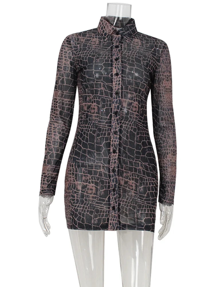 ファッションプリント レディース ミニドレス 深Vネック レギュラー長袖 ボタンスリムフィット ボディコン ストリートウェア ワンピース