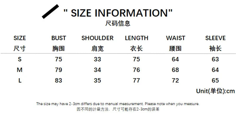 L バスト 86 / 33.86 長さ 75 / 29.53 袖丈 65 / 25.59