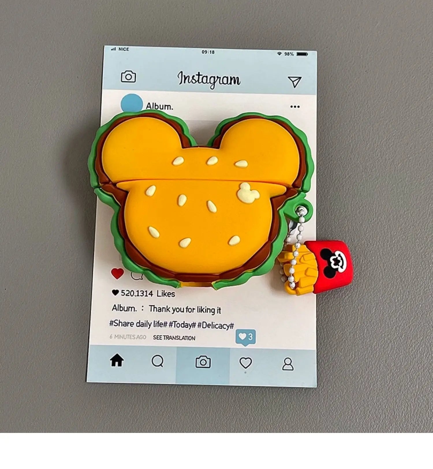 Airpods 1 2 3 4 Pro Pro 2 ミッキーバーガー シリコンイヤホンケース アクセサリー カバー