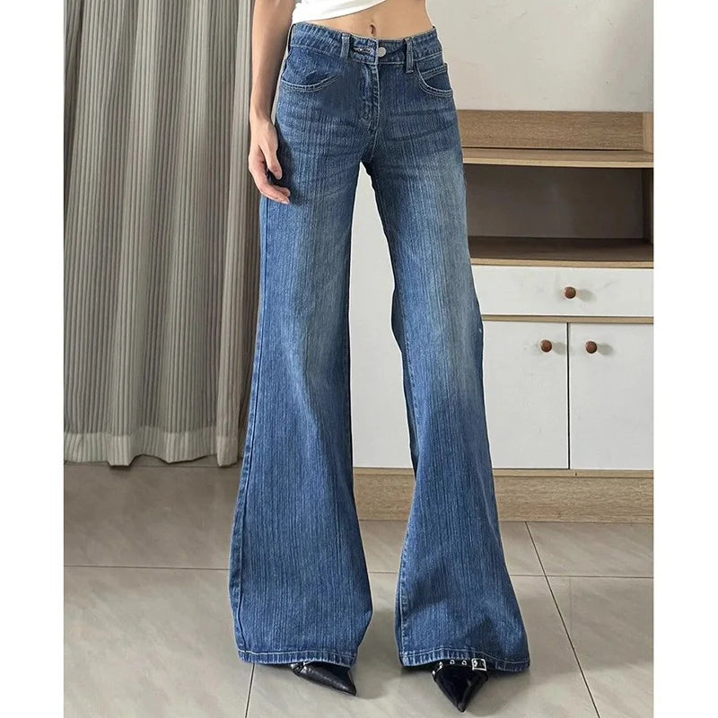 ガールズレトロローウエストフレアジーンズ レディースシックデザイナーベルボトムパンツ レディストリートファッションカジュアルデニムトラウザーズ