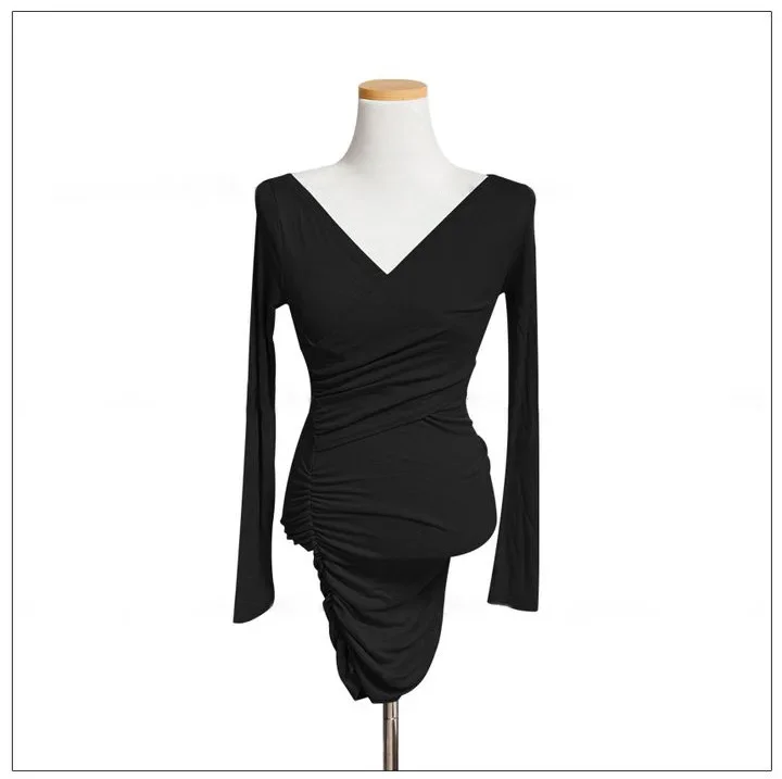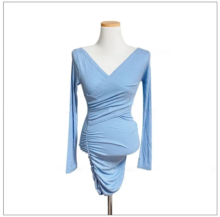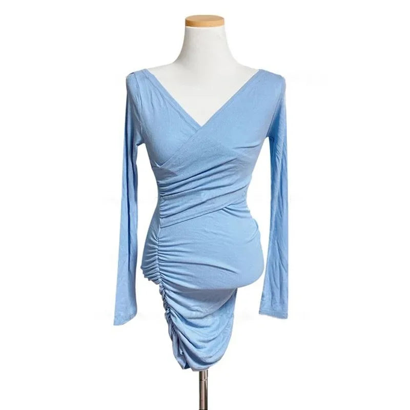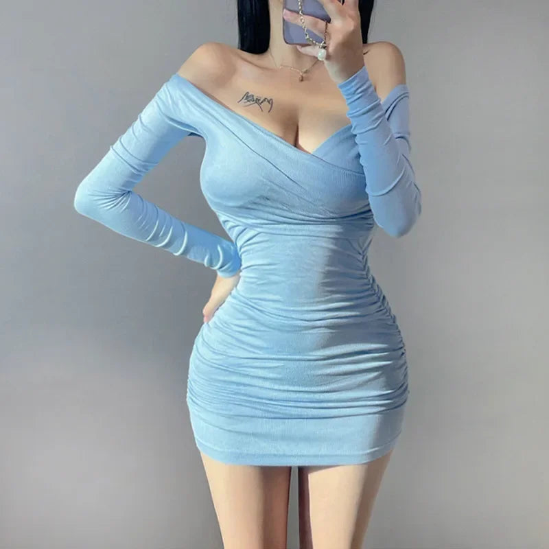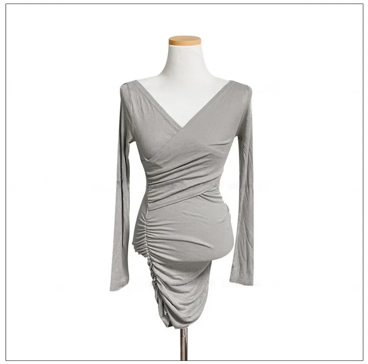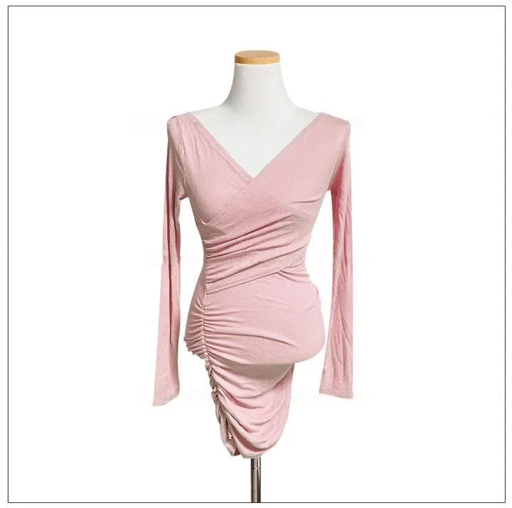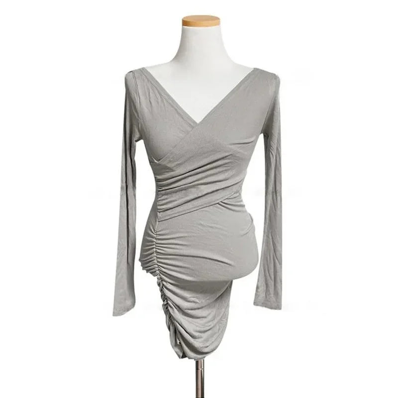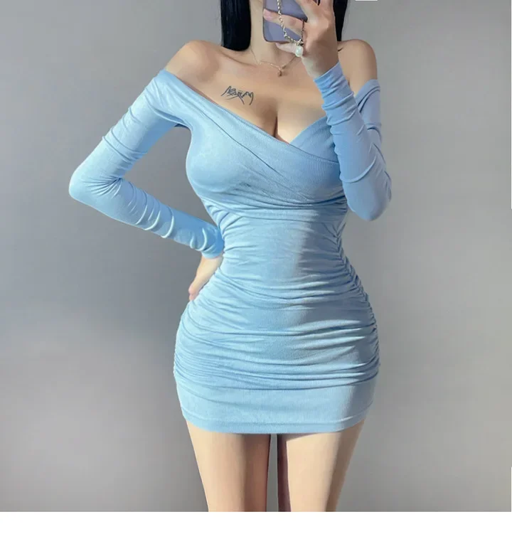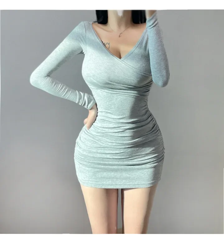 韓国風 春夏 スリムフィット 長袖 ベースレイヤー ミニドレス セクシーでスタイルアップ 快適なボディコンワンピース
