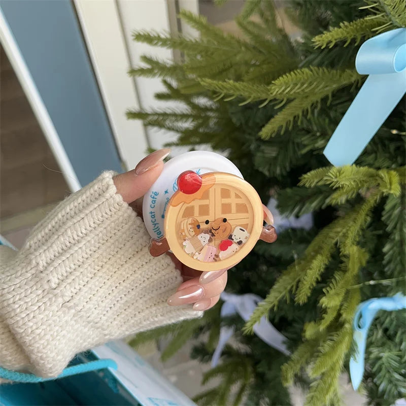 豪華でキュートなワッフルケーキのMagSafeワイヤレス充電ケース、iPhone 13 14 15 16 Pro Max用、面白い漫画ワッフルシェイクマグネットホルダー