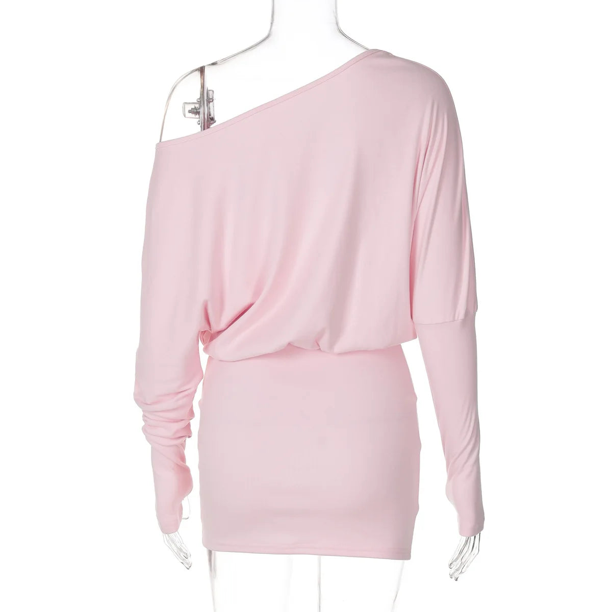 Lygens スキューカラー エレガント イブニング 長袖 ニット リブ 秋 ボディコン ミニドレス 韓国メーカー Y2K 韓国カジュアル服