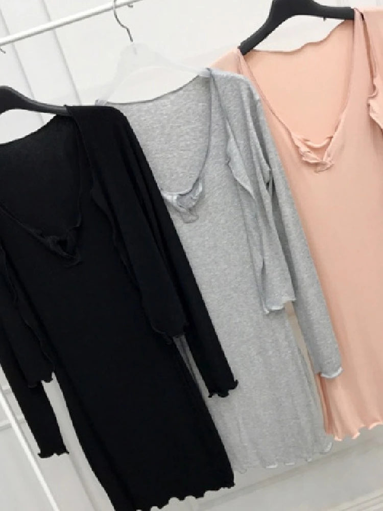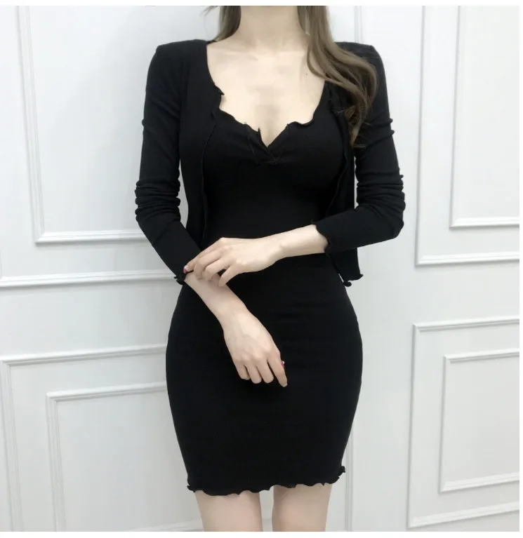 新作春ワンピース レディース ブラック ホワイト 長袖 ミニドレス 秋用 スキニー スリム エラスティック ボディコン セクシー イブニングパーティー用ドレス