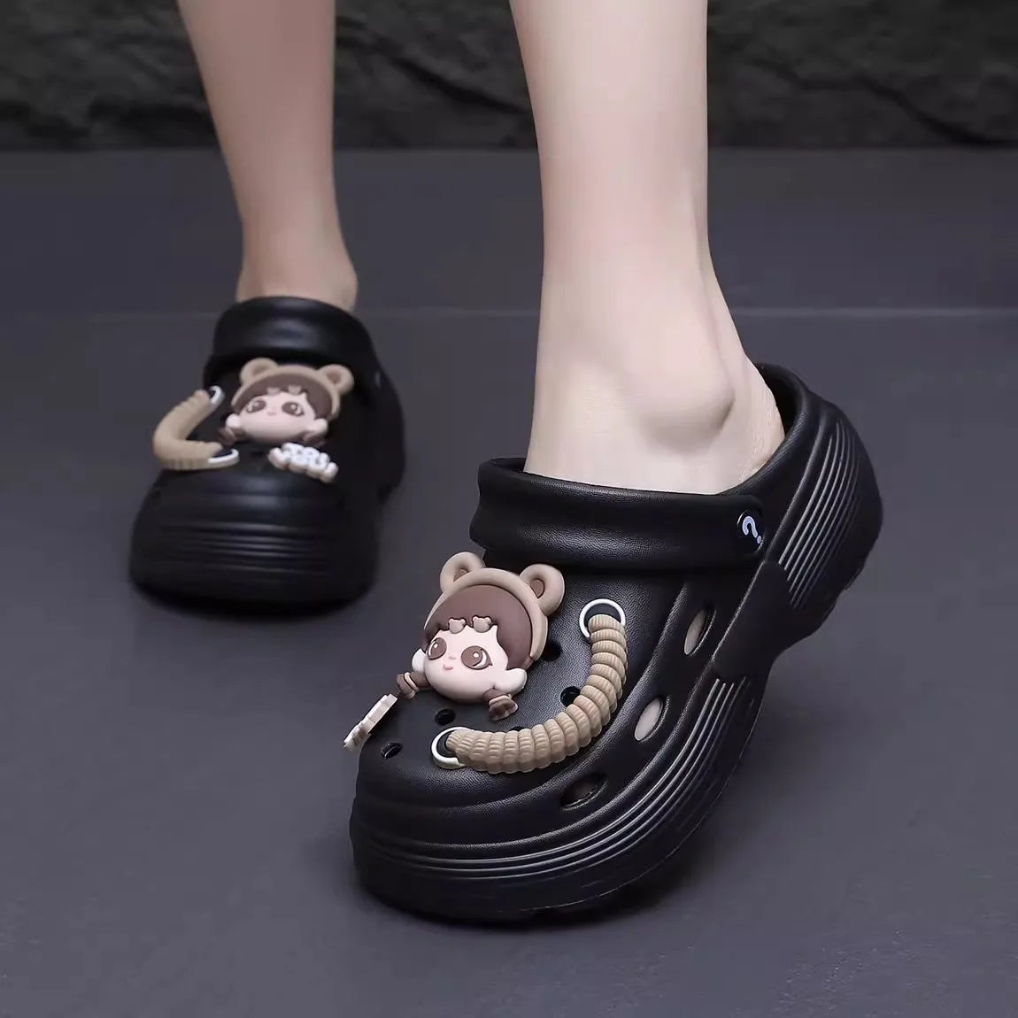 新作夏のかわいい小さな穴あきシューズ レディース 通気性 厚底 快適スリッパ ビーチシューズ サンダル プラットフォーム