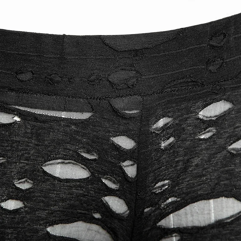 PUNK RAVE ゴシック レディース ブロークンメッシュ レギンス ハイエラスティック ホール クロシェ ブリーザブル リップドパンツ ブラック レッド スチームパンク チャーム セクシー