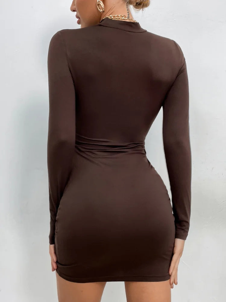 無地ドローストリング折りたたみウエスト絞りスリムボディコンワンピース レディース 長袖スキニーイブニングミニドレス クラブパーティーベスティドス