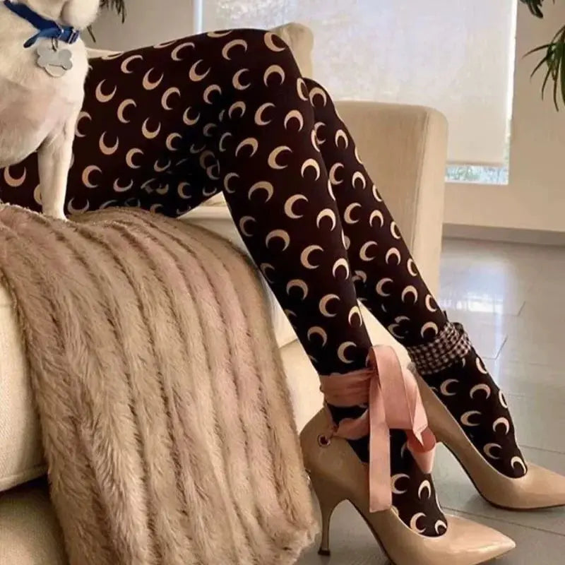 春夏 Y2K レトロデザイン センス レディース服 ムーンプリント レディースパンツ スリミング エラスティック ジャンプスーツ レギンス