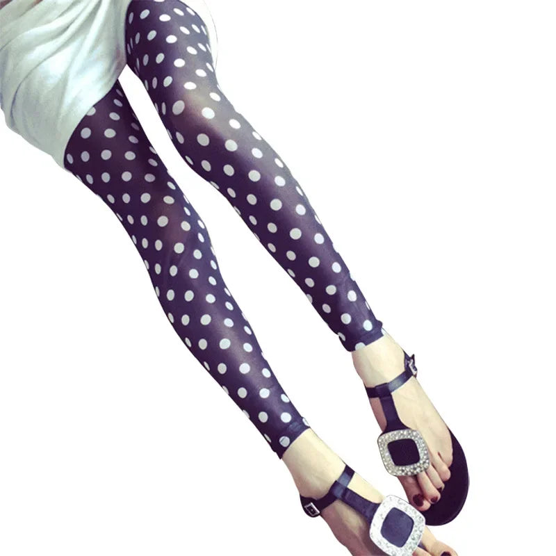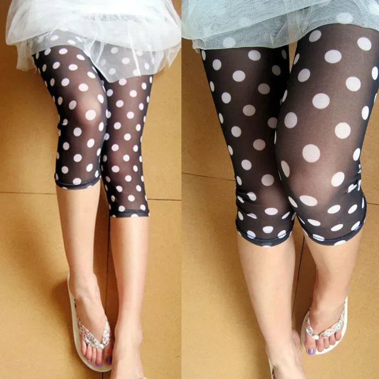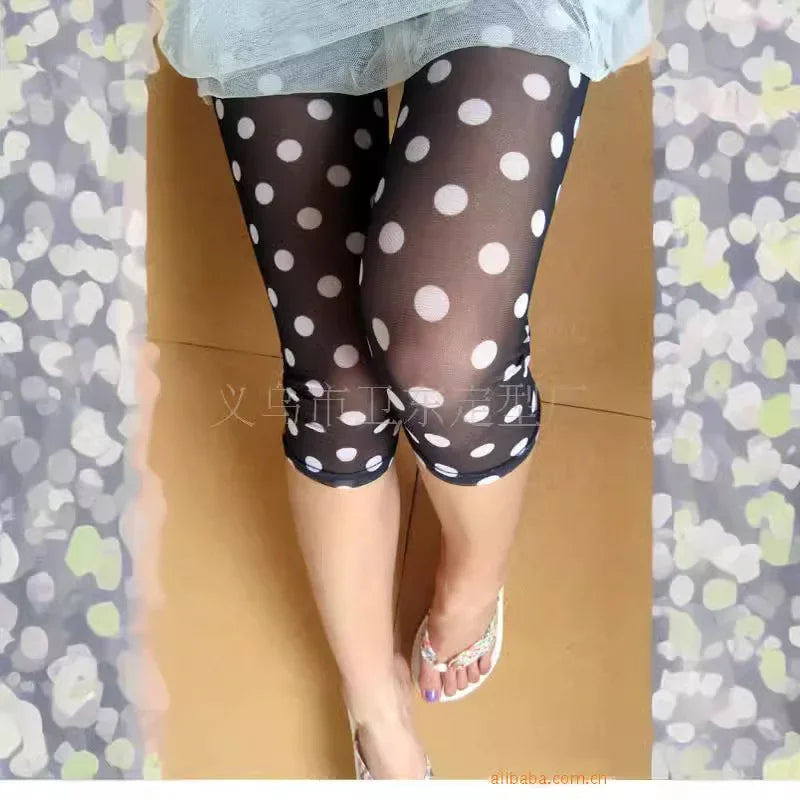 夏新作 水玉柄 ハイエラスティシティ 薄手メッシュ レディースレギンス ボトムス ポリエステル繊維 中国製