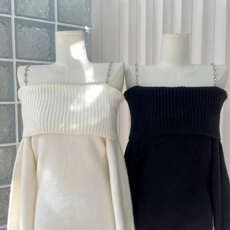 夏のセクシーでエレガントなニットワンピース レディース オフショルダー ボディコン ミニドレス 韓国風 長袖 パーティードレス スラッシュネック