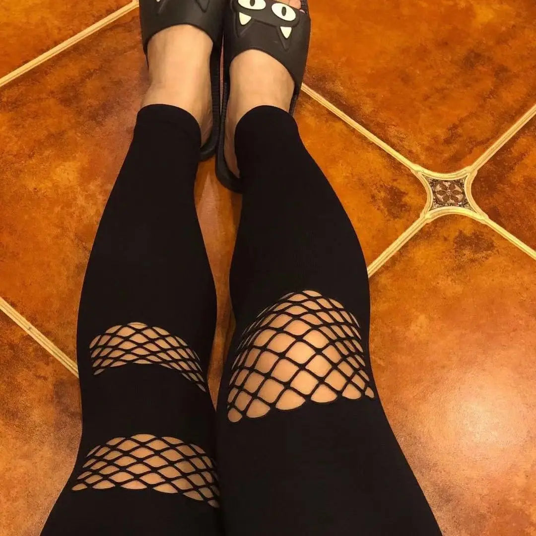 夏用レディースホロー釣りネットストレッチレギンス スポーツフィットネススキニーパンツ クロップド3/4丈レギンス カプリクロップドモーダルパンツ
