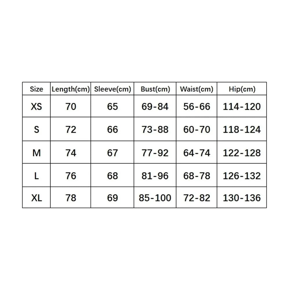 XLサイズ:着丈78cm(30.71in)、袖丈69cm(27.17in)、バスト85-100cm(33.46-39.37in)、ウエスト72-82cm(28.35-32.28in)、ヒップ130-136cm(51.18-53.54in)