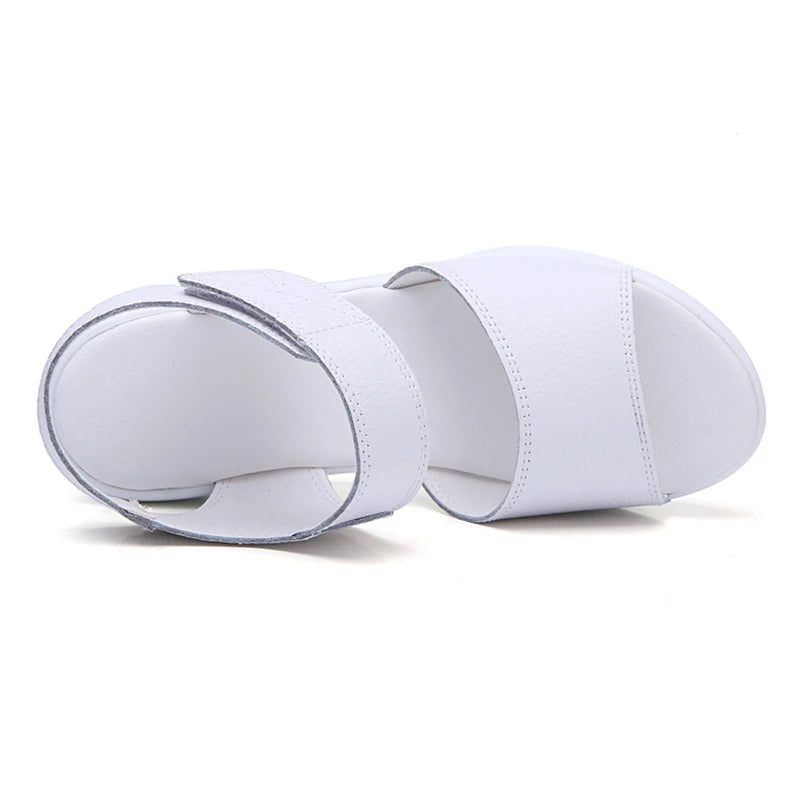WOIZGIC レディース 本革 サンダル プラットフォーム フック&ループ カジュアル 夏 クール ビーチ AM-9018