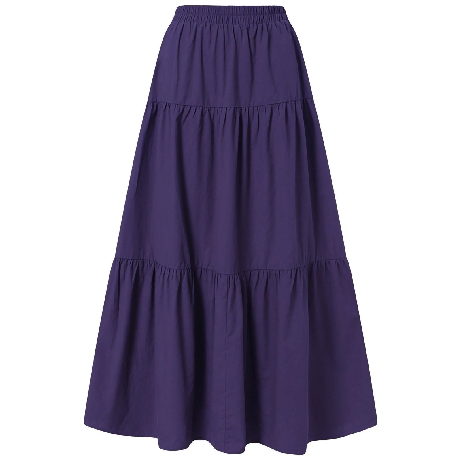 レディースカジュアルロングスカート 無地 プリーツ 大きめヘム ゴムウエスト ゆったりフィット シンプルスタイル ボトムス