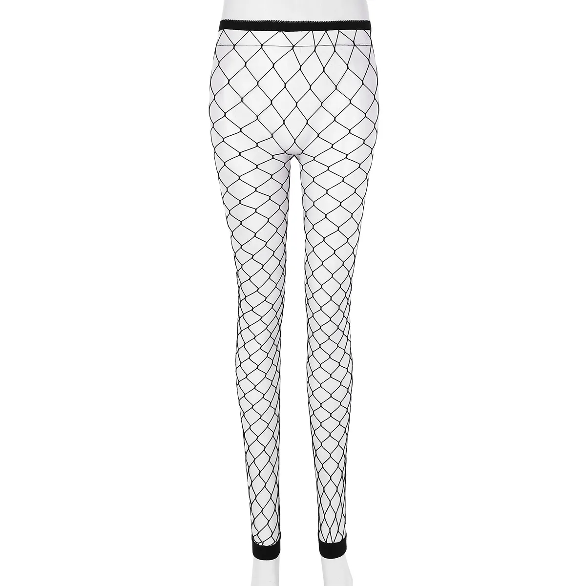 レディース セクシー フィッシュネット レギンス ホールアウト メッシュ ネット パンツ シースルー ハイウエスト 透け感 アンクル丈 フットレス レギンスパンツ