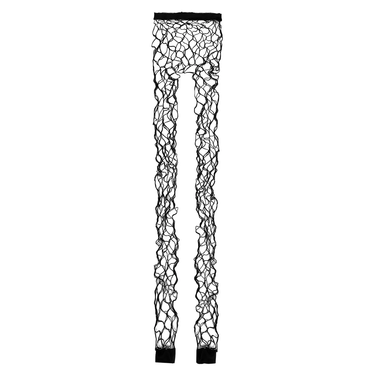 ハイウエストのフルゴムウエストバンド、フットレススタイルで足首丈。サイズ違いのフィッシュネットから選べます。