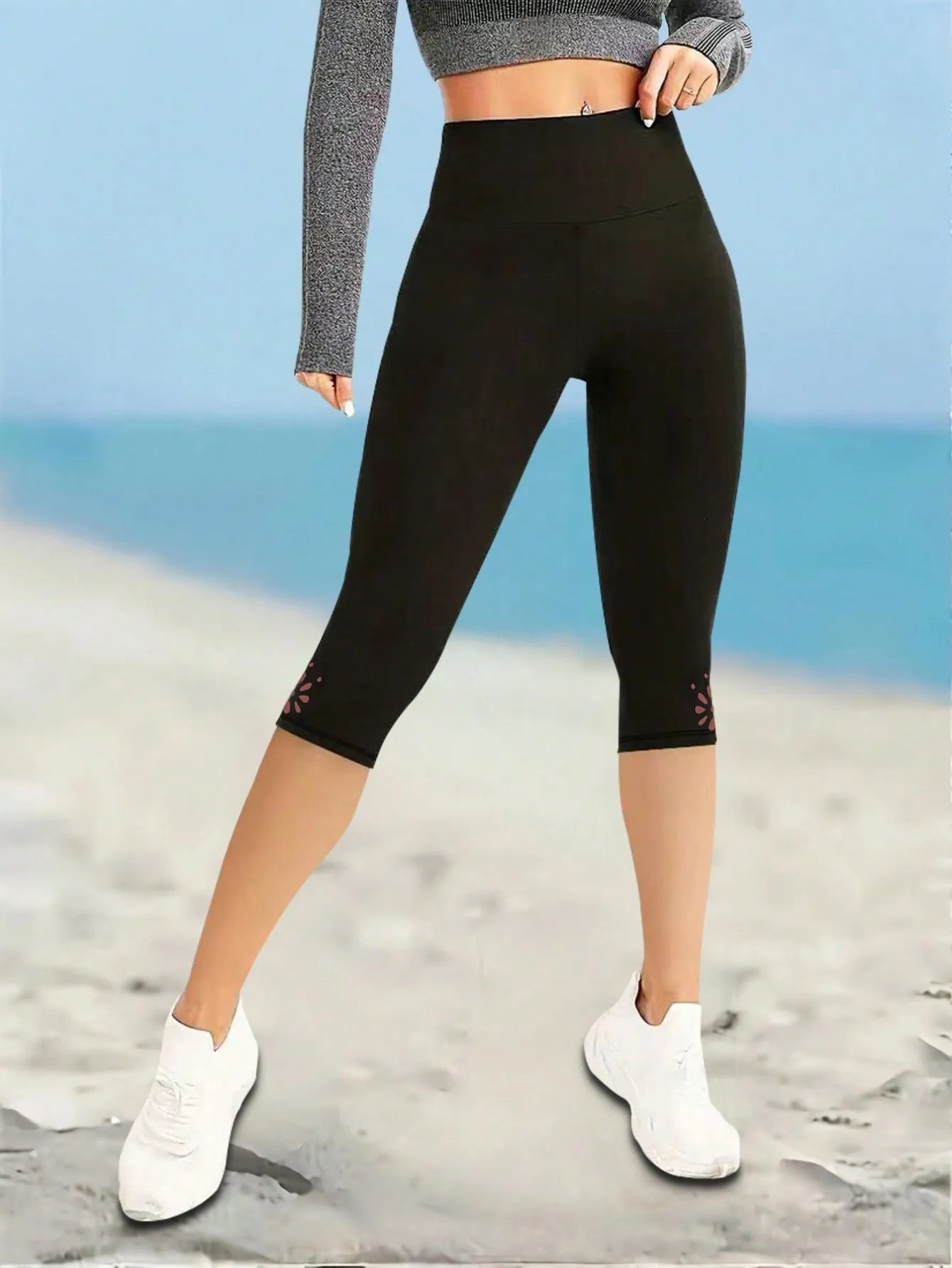 レディース春夏ストレッチカプリヨガレギンス - 柔らかい生地のプリント入りワークアウトタイツ ジム・ランニング・ピラティス用
