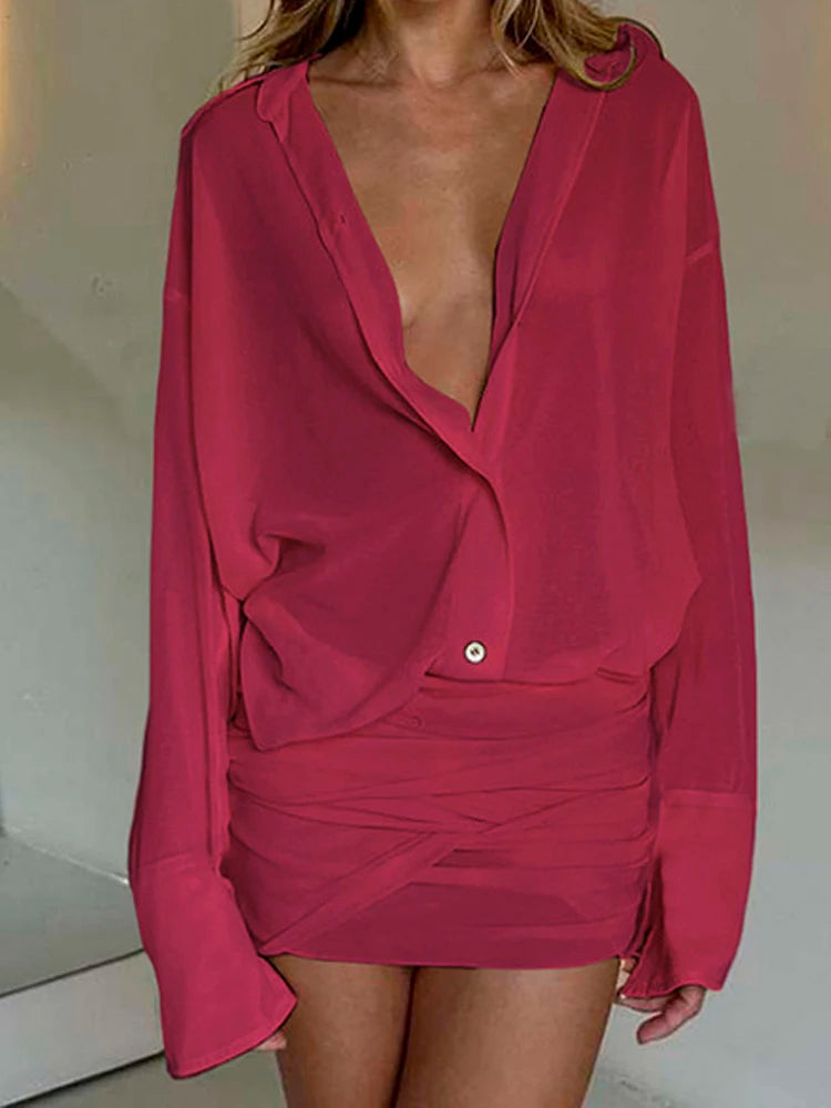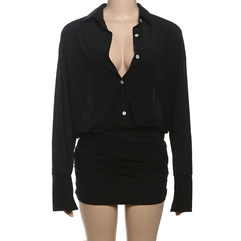 イエローボタンアップオフィスシャツドレス レディース 2025年夏ファッション ラペル長袖 セクシーY2Kバンデージボディコンミニドレス