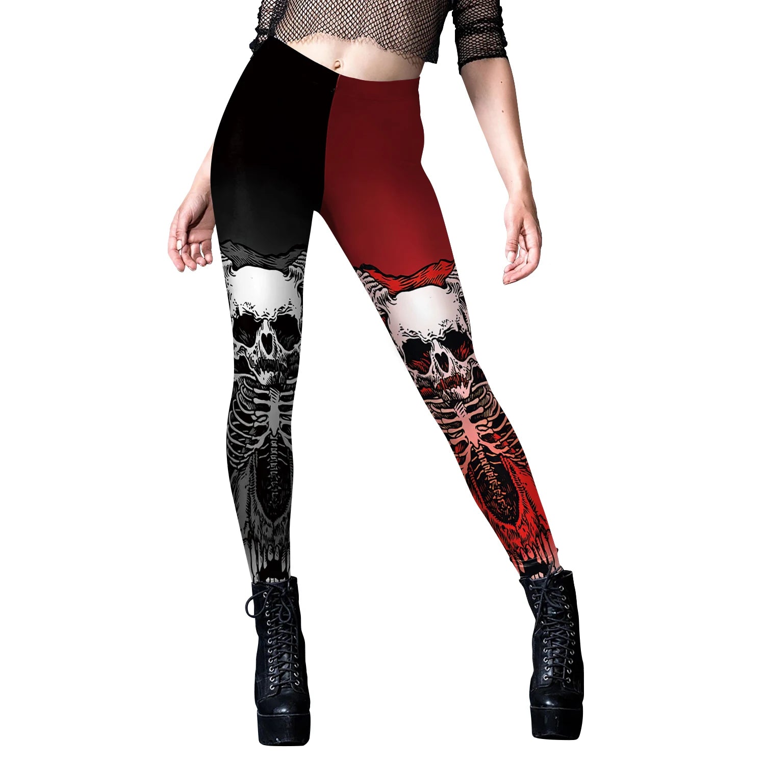 [You're My Secret] ハロウィン スケルトンプリント レギンス パンク レディース レギンス ゴシック フィットネス アンクルパンツ セクシー ストレッチ ブラックレギンス